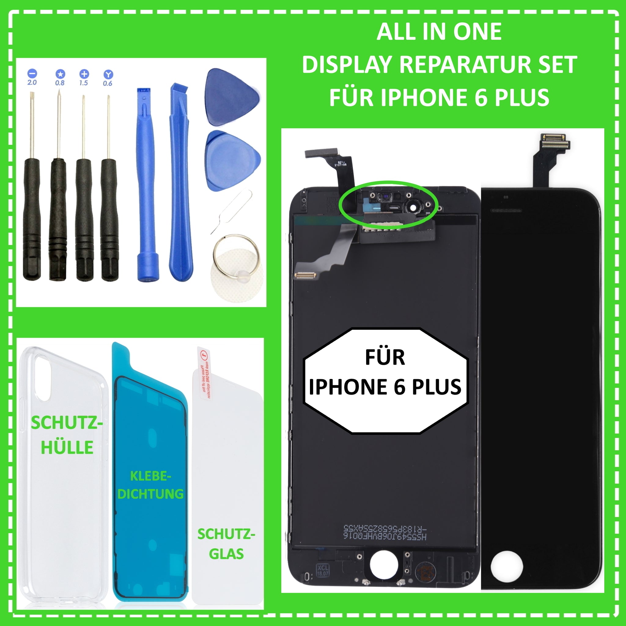 Ihnen ist Ihr iPhone 6 Plus heruntergefallen, sodass dabei das Display beschädigt wurde? Eine Reparatur in einer Fachwerkstatt ist Ihnen zu teuer ? Dann sind Sie hier genau richtig. Mit unserem iPhone 6 Plus Premium Display Reparatur Set haben Sie nun die Möglichkeit Ihr iPhone 6 Plus Display einfach und kostengünstig selber zu reparieren. Hierzu verwenden Sie einfach das mitgelieferte 10-teilige Werkzeugset und die Klebedichtung. Zudem erhalten Sie gratis noch ein passendes Schutzglas und eine passende Schutzhülle dazu. Das Display und der Touchscreen sind nagelneu, von höchster Qualität und vollständig auf Funktion geprüft