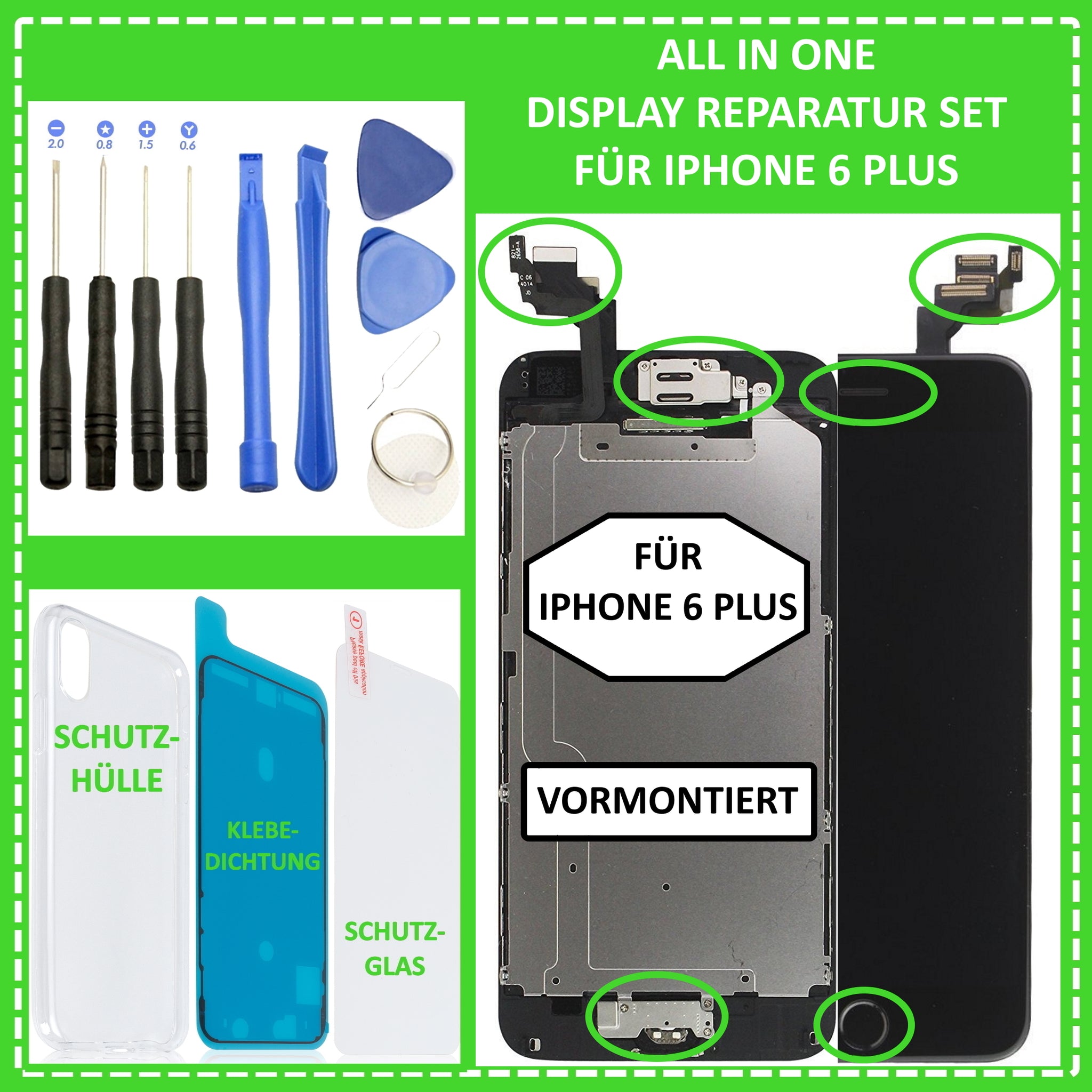 Ihnen ist Ihr iPhone 6 Plus heruntergefallen, sodass dabei das Display beschädigt wurde? Eine Reparatur in einer Fachwerkstatt ist Ihnen zu teuer ? Dann sind Sie hier genau richtig. Mit unserem iPhone 6 Plus Premium Display Reparatur Set haben Sie nun die Möglichkeit Ihr iPhone 6 Plus Display einfach und kostengünstig selber zu reparieren. Hierzu verwenden Sie einfach das mitgelieferte 10-teilige Werkzeugset und die Klebedichtung. Zudem erhalten Sie gratis noch ein passendes Schutzglas und eine passende Schutzhülle dazu. Außerdem ist das Display bereits einbaufertig. Das heißt, dass Teile wie Frontkamera, Hörmuschel, Sensoren, Hitzeblech und Home Button bereits vormontiert sind. Alle verwendeten Teile sind nagelneu, von höchster Qualität und vollständig auf Funktion geprüft.