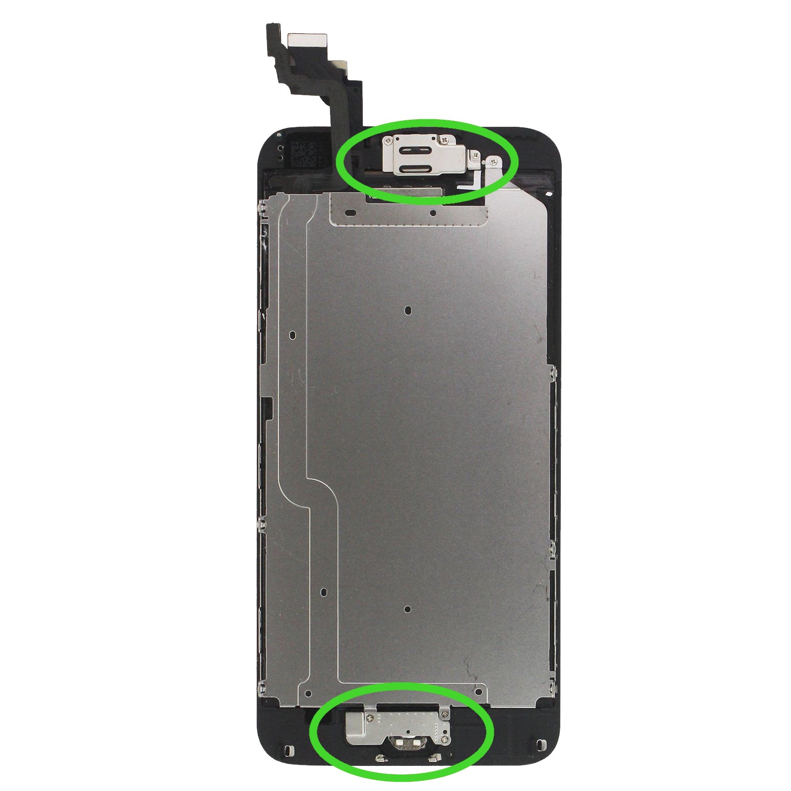 - Frontkamera, Hörer, Sensor, Hitzeblech und Home Button sind bereits vormontiert